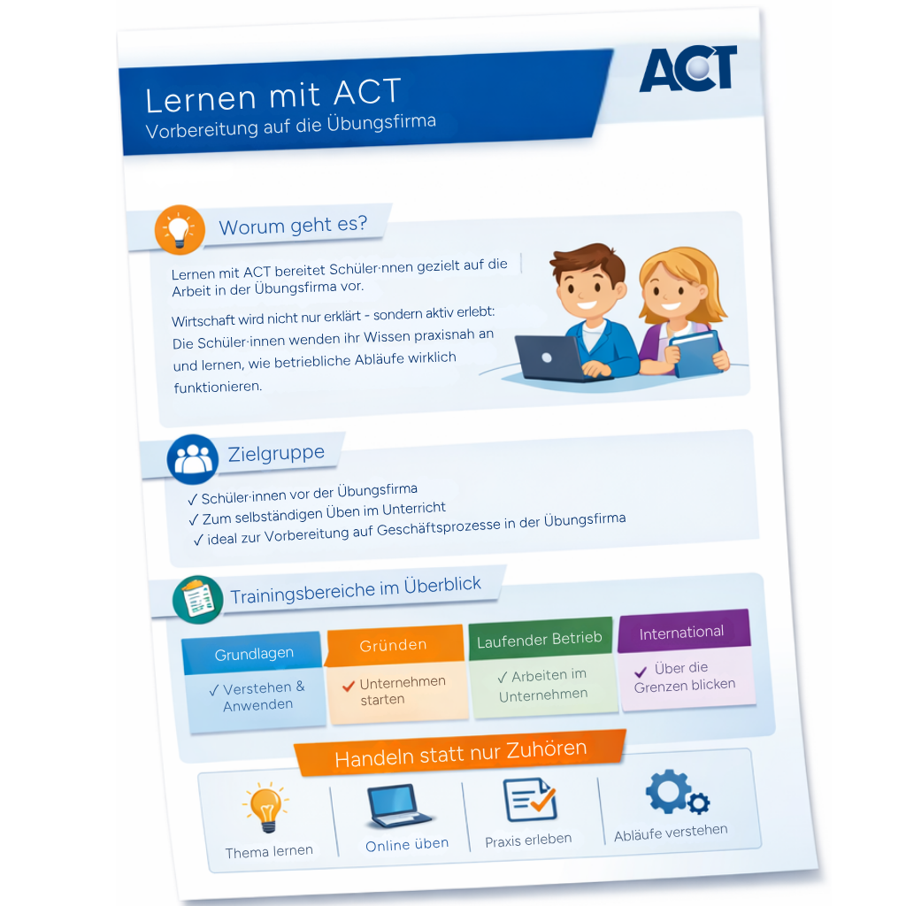 Mit Lernen mit ACT können sich Schüler·innen gezielt auf die Arbeit in der Übungsfirma vorbereiten.