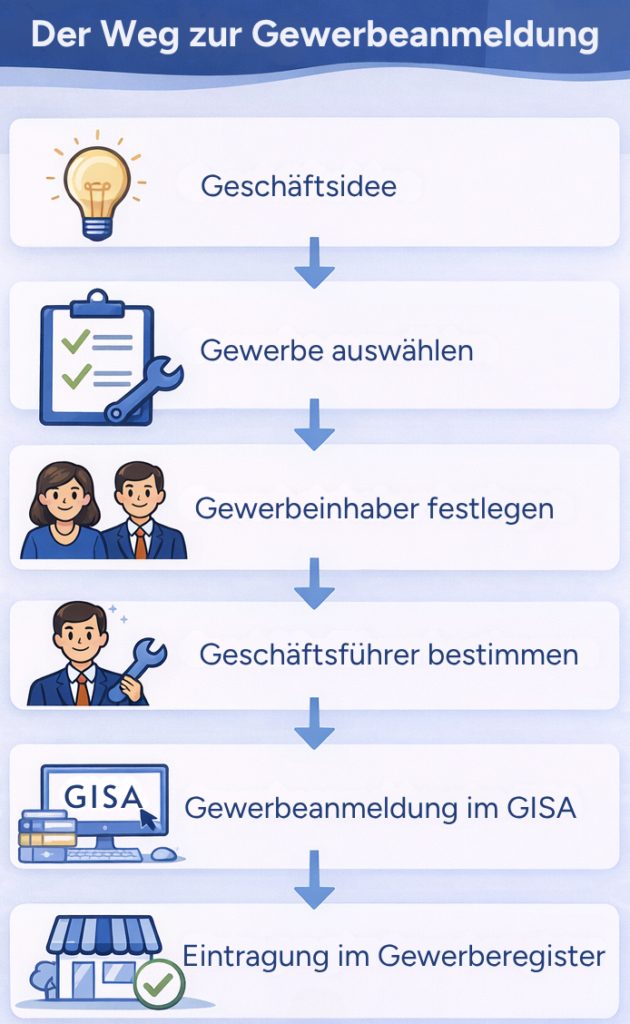 Dieser Ablauf zeigt Ihnen Schritt für Schritt, wie eine Gewerbeanmeldung durchgeführt wird ➡️