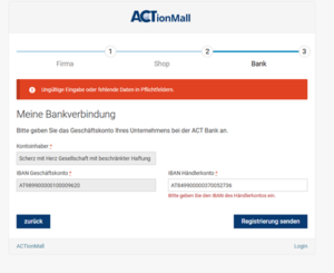 Der IBAN für meine Übungsfirma lässt sich nicht ändern. Somit ist es mir nicht möglich, die Registrierung zur ACTion Mall zu Ende zu bringen.